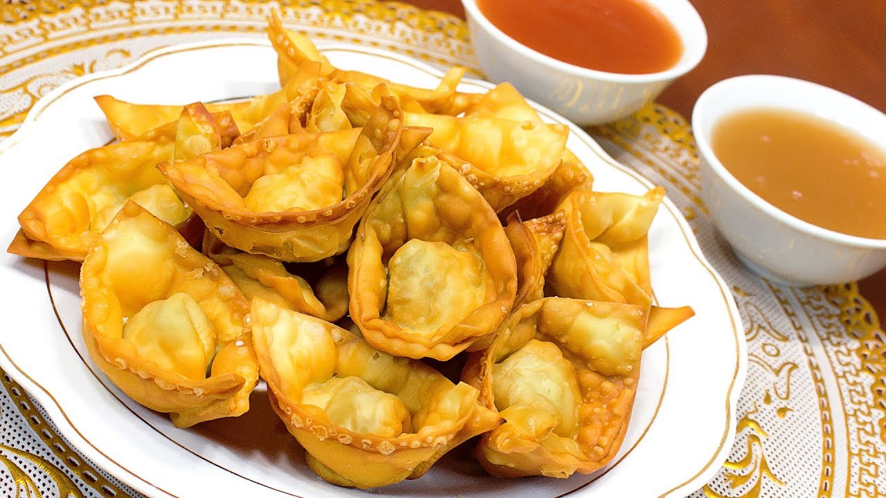 Wantanes rellenos de carne y verduras, fritos hasta dorar